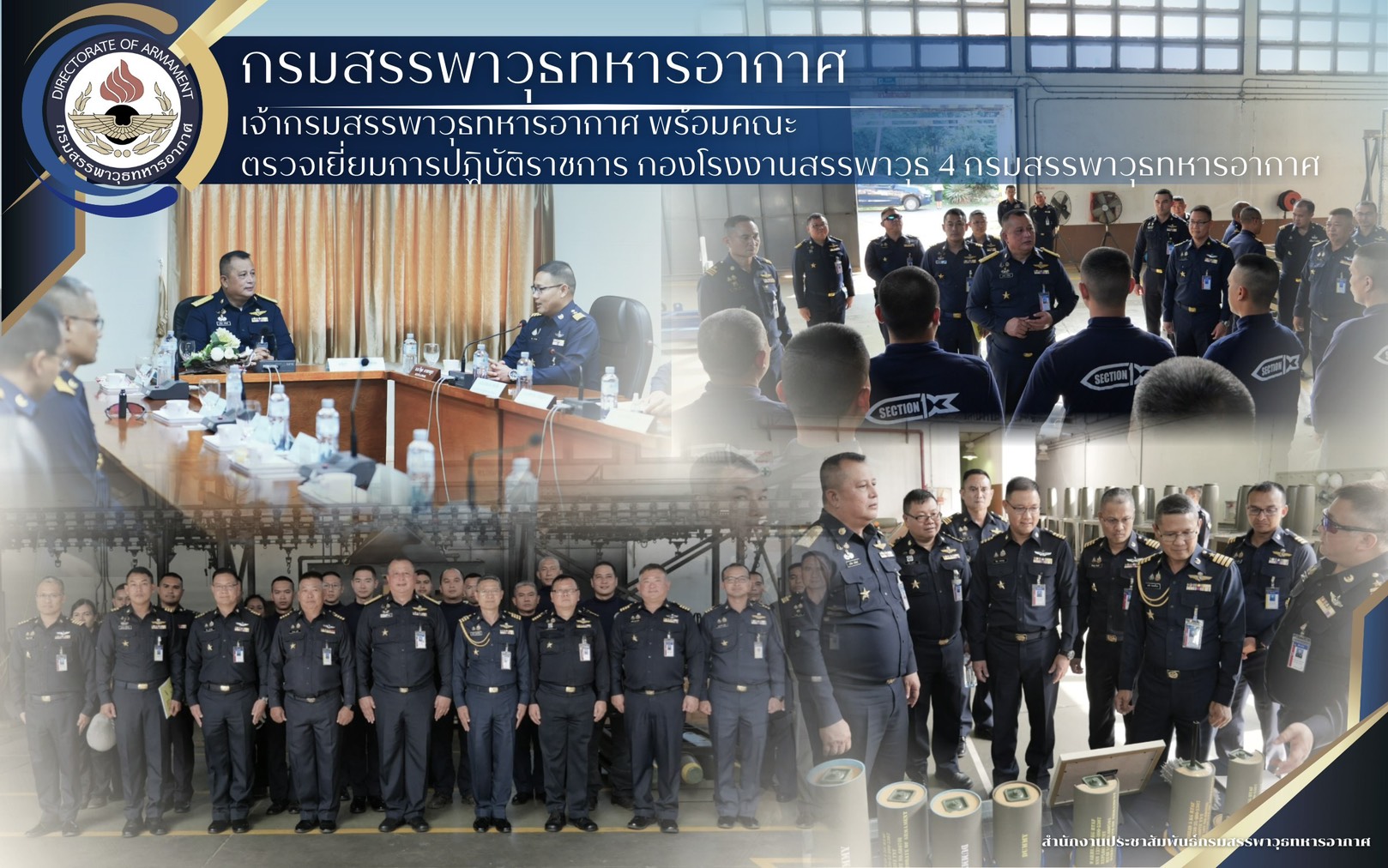 เมื่อวันที่ 27 พฤศจิกายน 2568 พลอากาศโท มาโนช อารีพงษ์ เจ้ากรมสรรพาวุธทหารอากาศ พร้อมคณะผู้บังคับบัญชา เดินทางตรวจเยี่ยมการปฏิบัติราชการของกองโรงงานสรรพาวุธ 4 กรมสรรพาวุธทหารอากาศ โดยมี นาวาอากาศเอก วิพุธ อารยางกูร ผู้อำนวยการกองโรงงานสรรพาวุธ 4 พร้อม หัวหน้าหน่วยขึ้นตรง และข้าราชการ ให้การต้อนรับ