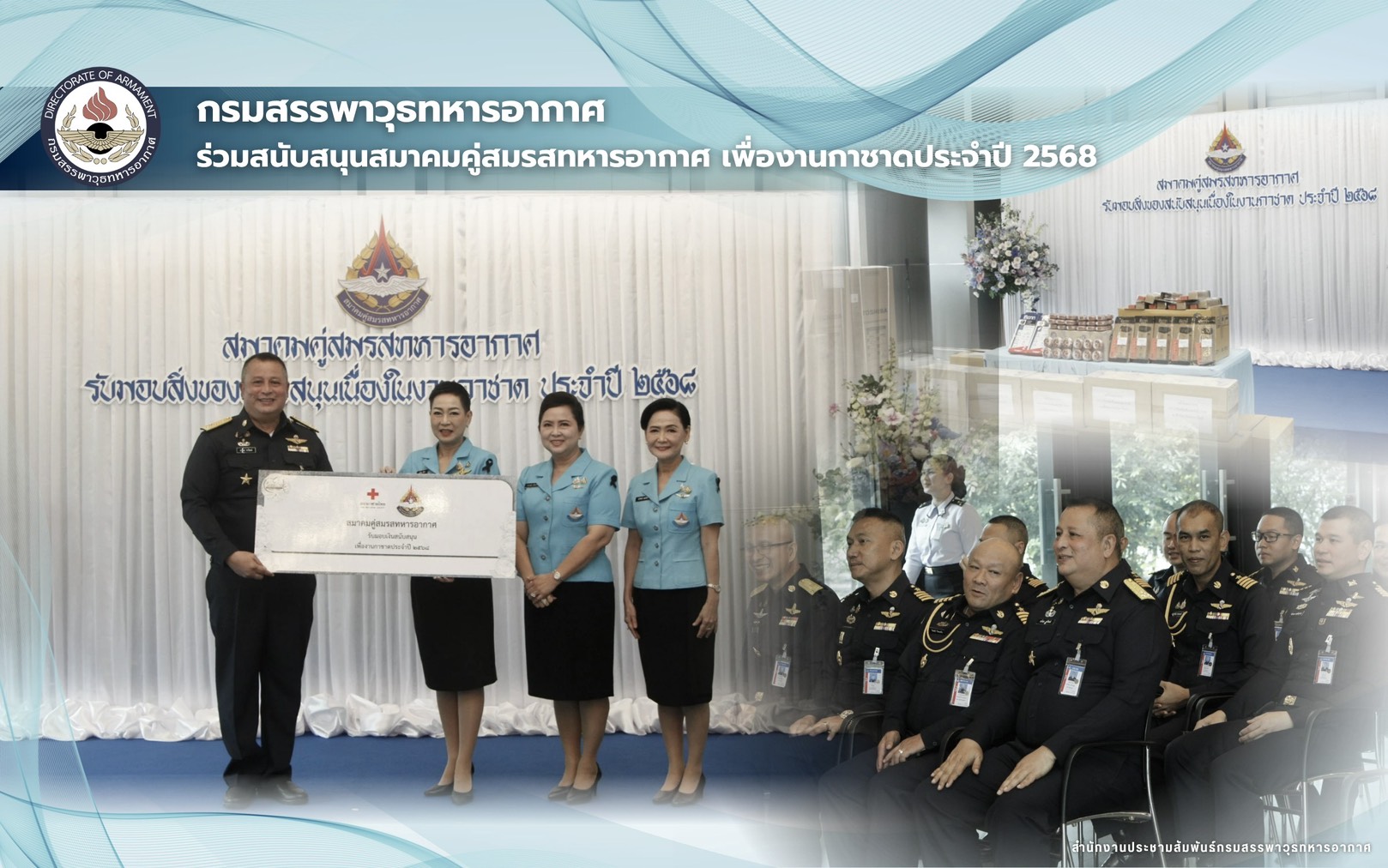 พลอากาศโท มาโนช อารีพงษ์ เจ้ากรมสรรพาวุธทหารอากาศ เป็นผู้แทนกรมสรรพาวุธทหารอากาศในการร่วมสนับสนุนกิจกรรมของสมาคมคู่สมรสทหารอากาศ เพื่อใช้ในงานกาชาดประจำปี 2568 โดยมีคุณอภิษฎา คันธา นายกสมาคมคู่สมรสทหารอากาศ ให้เกียรติเป็นประธานในการรับมอบ ณ สมาคมแม่บ้านทหารอากาศ