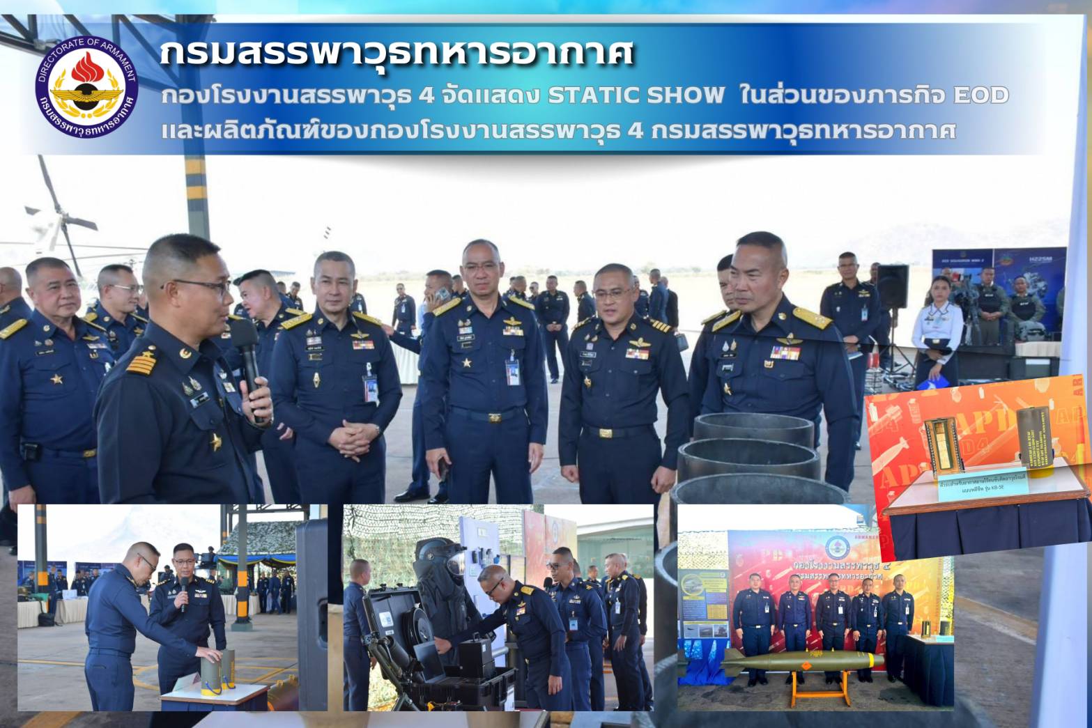 กองโรงงานสรรพาวุธ 4 จัดแสดงยุทโธปกรณ์ในส่วนของผลิตภัณฑ์ของกองโรงงานสรรพาวุธ 4 กรมสรรพาวุธทหารอากาศ ร่วมกับชุดทำลายวัตถุระเบิด 2 แผนกทำลายวัตถุระเบิด 1 กองทำลายวัตถุระเบิด กรมสรรพาวุธทหารอากาศ