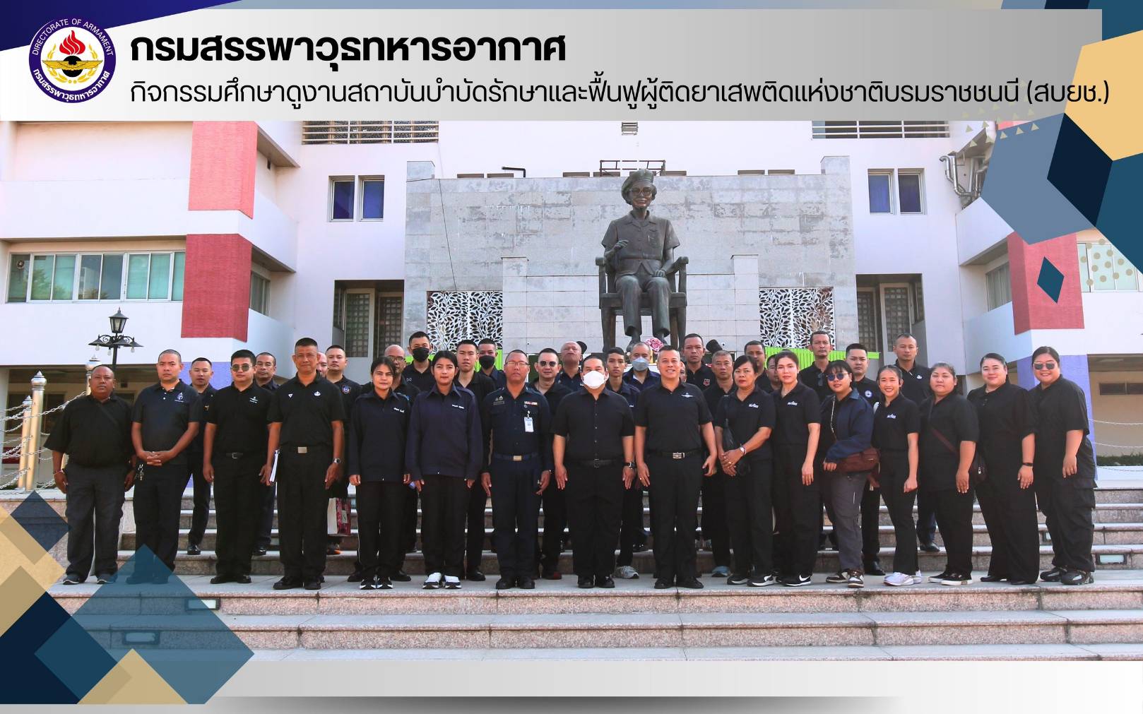 คณะกรรมการศูนย์ปฏิบัติการป้องกันและปราบปรามยาเสพติด กรมสรรพาวุธทหารอากาศ จัดกิจกรรมศึกษาดูงาน ณ สถาบันบำบัดรักษาและฟื้นฟูผู้ติดยาเสพติดแห่งชาติบรมราชชนนี