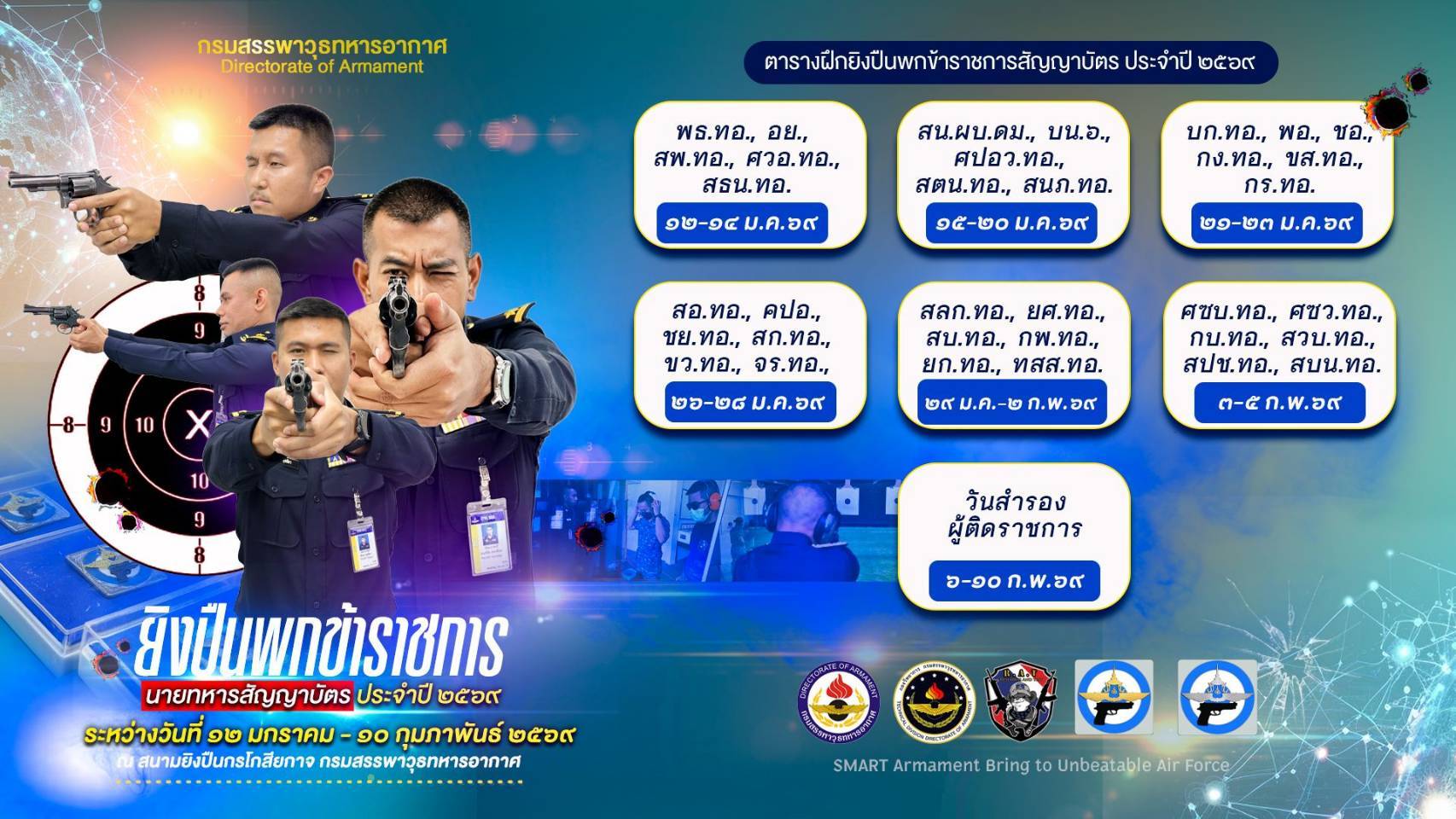 ระหว่างวันที่ 12 มกราคม -10 กุมภาพันธ์ 2569 ณ สนามยิงปืนกรโกสียกาจ กรมสรรพาวุธทหารอากาศ