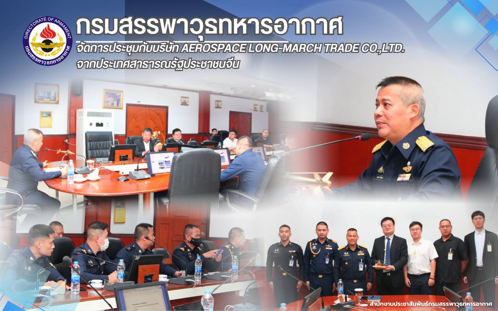 พลอากาศตรี สมภพ ปีตะเสน รองเจ้ากรมสรรพาวุธทหารอากาศ เป็นประธานในการประชุมกับบริษัท Aerospace Long-march Trade Co.,Ltd. จากประเทศสาธารณรัฐประชาชนจีน