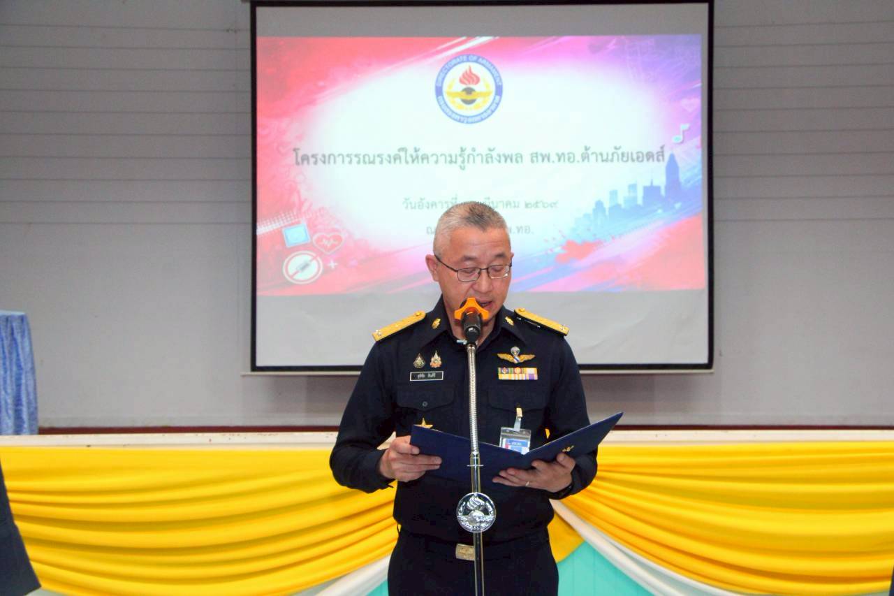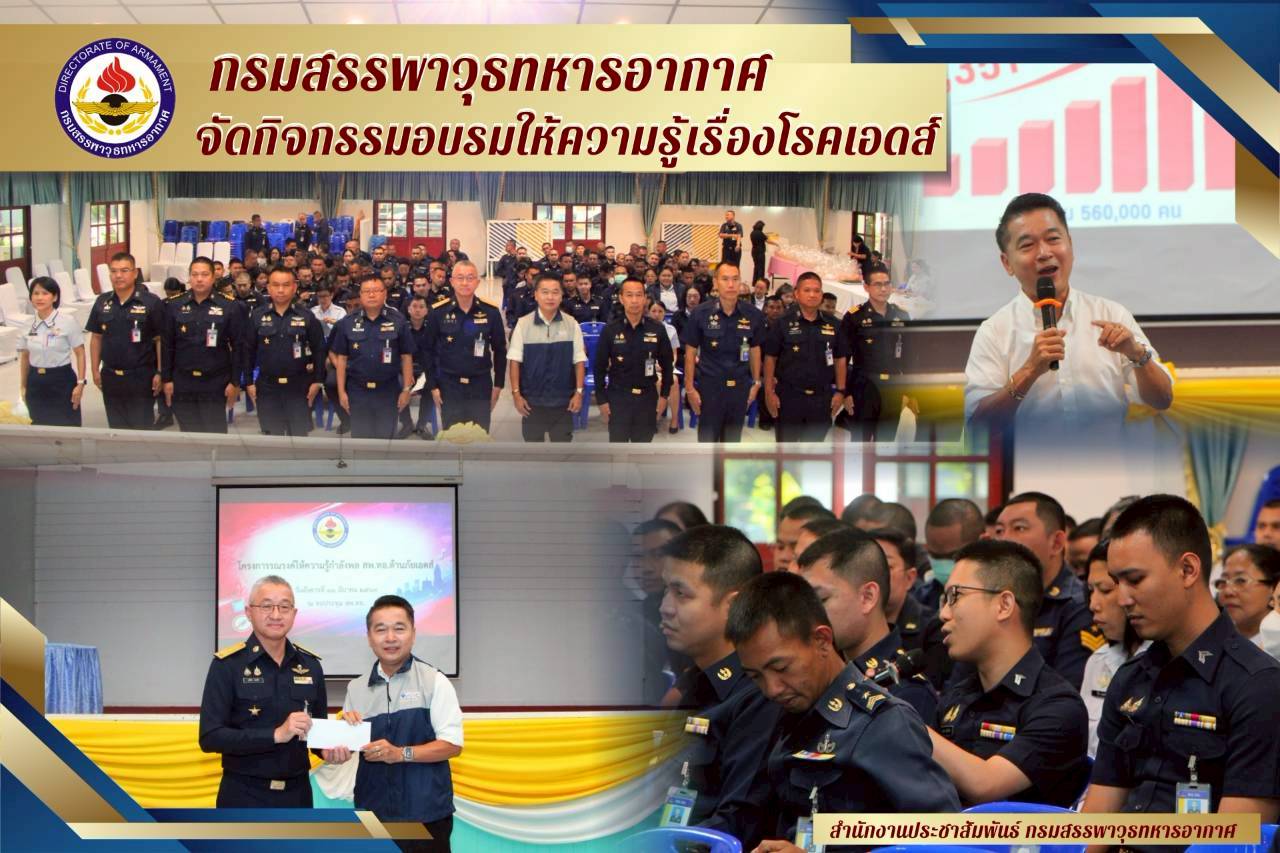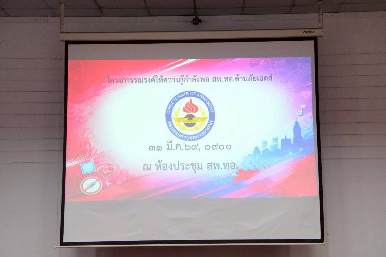กรมสรรพาวุธทหารอากาศ พร้อมด้วย ผู้บังคับบัญชาระดับสูง นายทหารชั้นผู้ใหญ่ พร้อมด้วย ข้าราชการ ลูกจ้าง และพนักงานราชการ ณ หอประชุมกรมสรรพาวุธทหารอากาศ เมื่อวันที่ 31 มีนาคม 2569 โดยได้รับเกียรติ คุณ อภิวัฒน์ กวางแก้ว รองประธานเครือข่ายผู้ติดเชื้อเอชไอวี/เอดส์ประเทศไทย ให้เกียรติบรรยายพิเศษเรื่อง"โรคเอดส์" ในครั้งนี้
