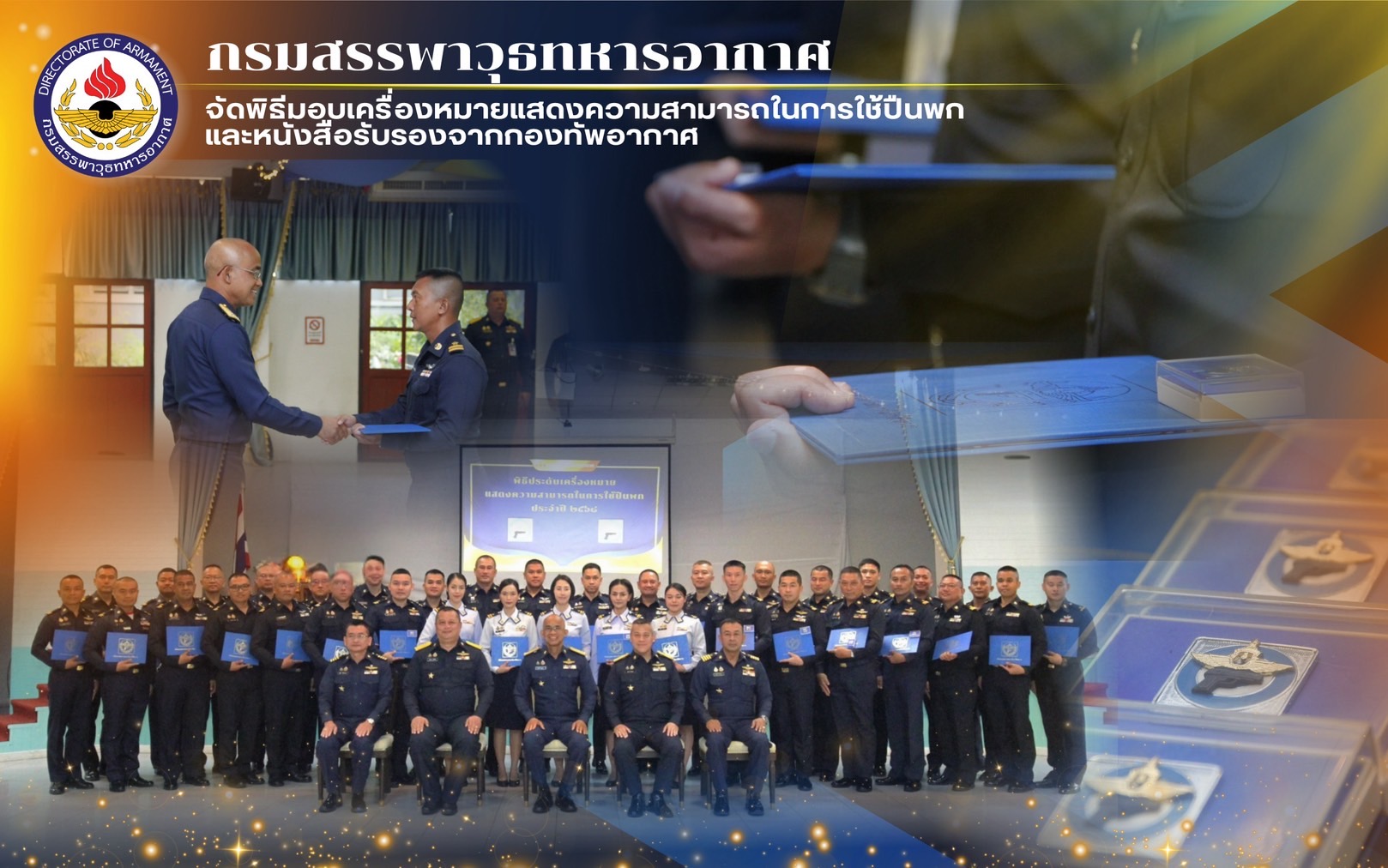 กรมสรรพาวุธทหารอากาศ จัดพิธีมอบเครื่องหมายแสดงความสามารถในการใช้ปืนพก และหนังสือรับรองจากกองทัพอากาศ