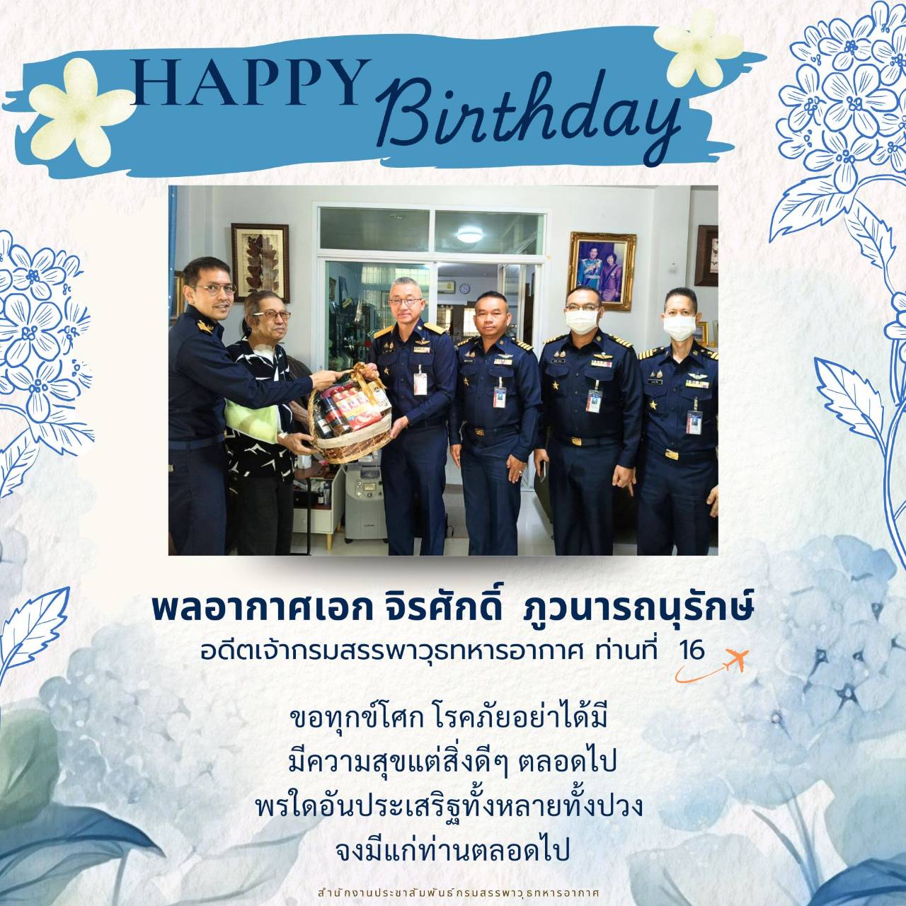 อวยพรวันคล้ายวันเกิด พลอากาศเอก จิรศักดิ์ ภูวนารถนุรักษ์ อดีตเจ้ากรมสรรพาวุธทหารอากาศ ท่านที่ 16 (พ.ศ.2540-2544)